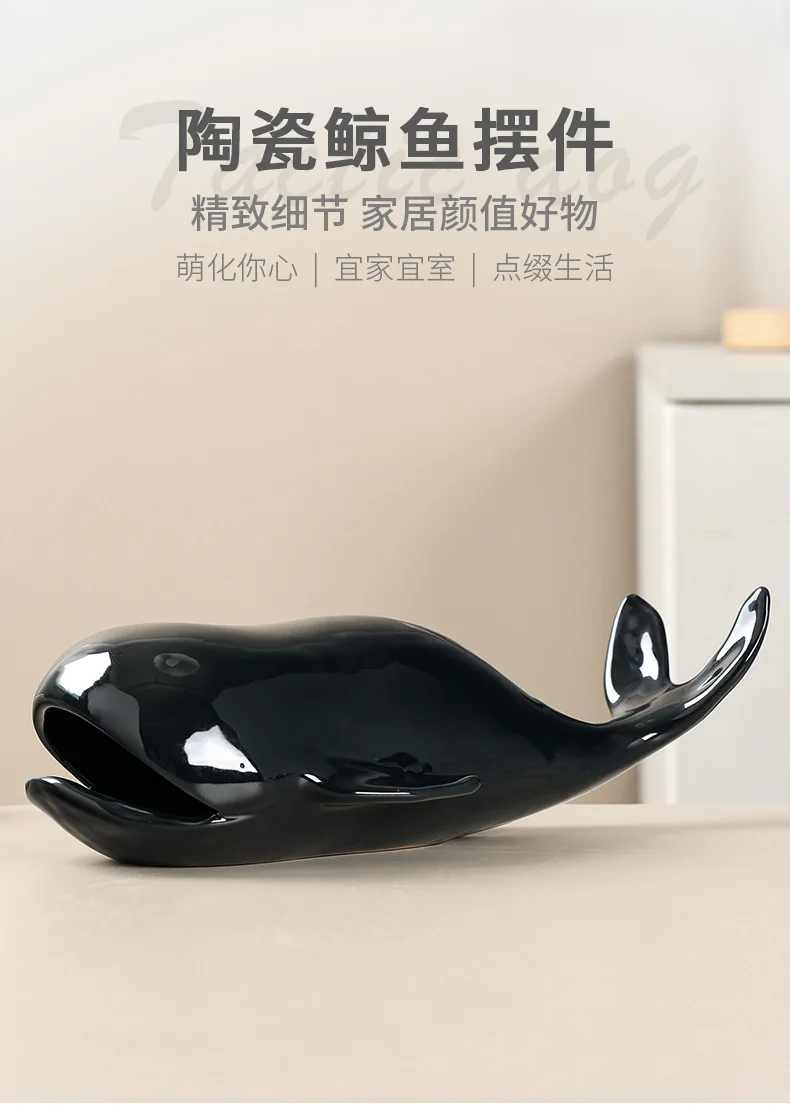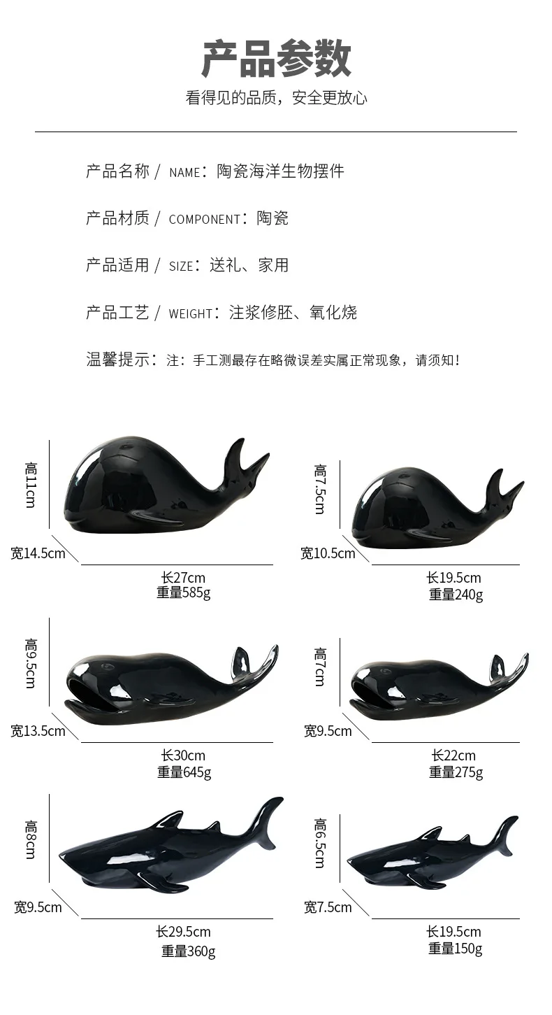 Cute Ceramic Dolphin Shark Blue Whale Statue