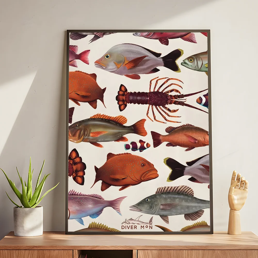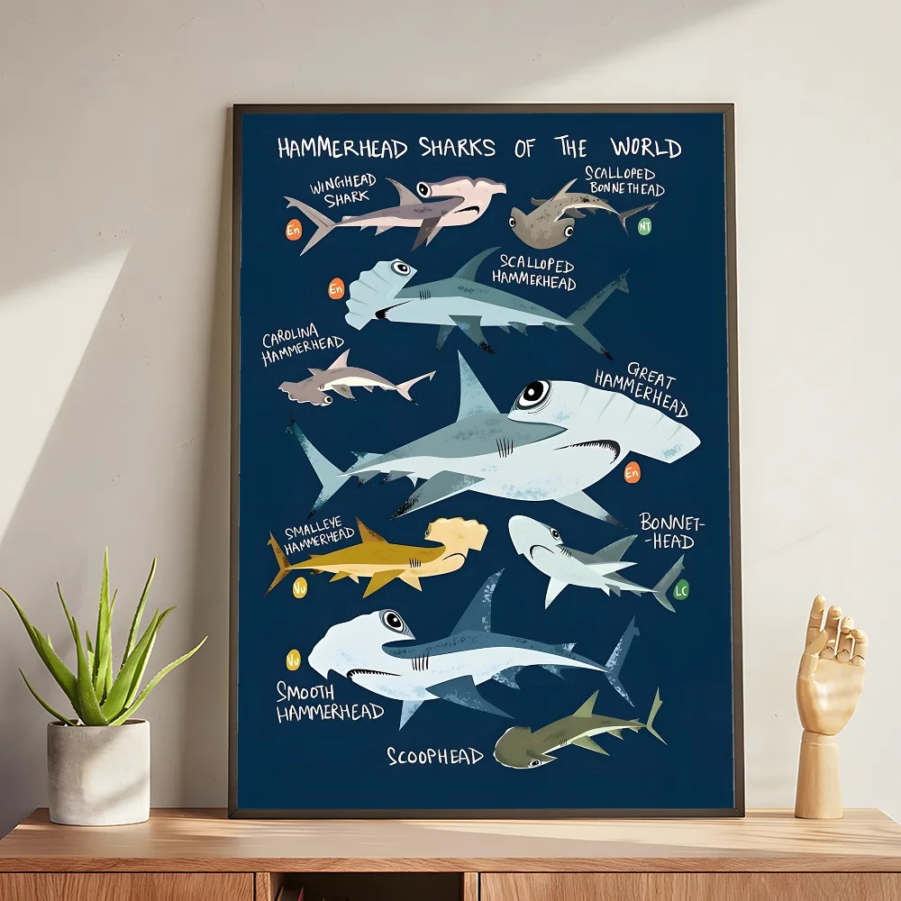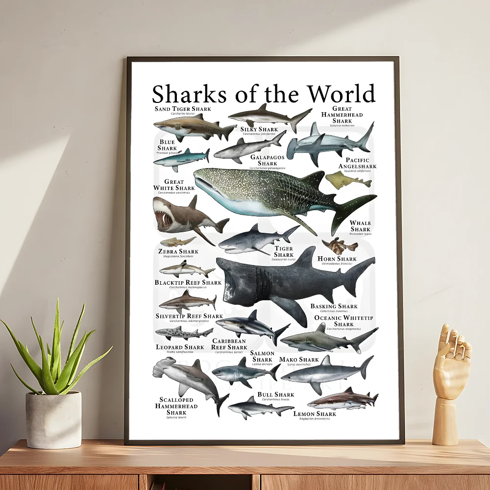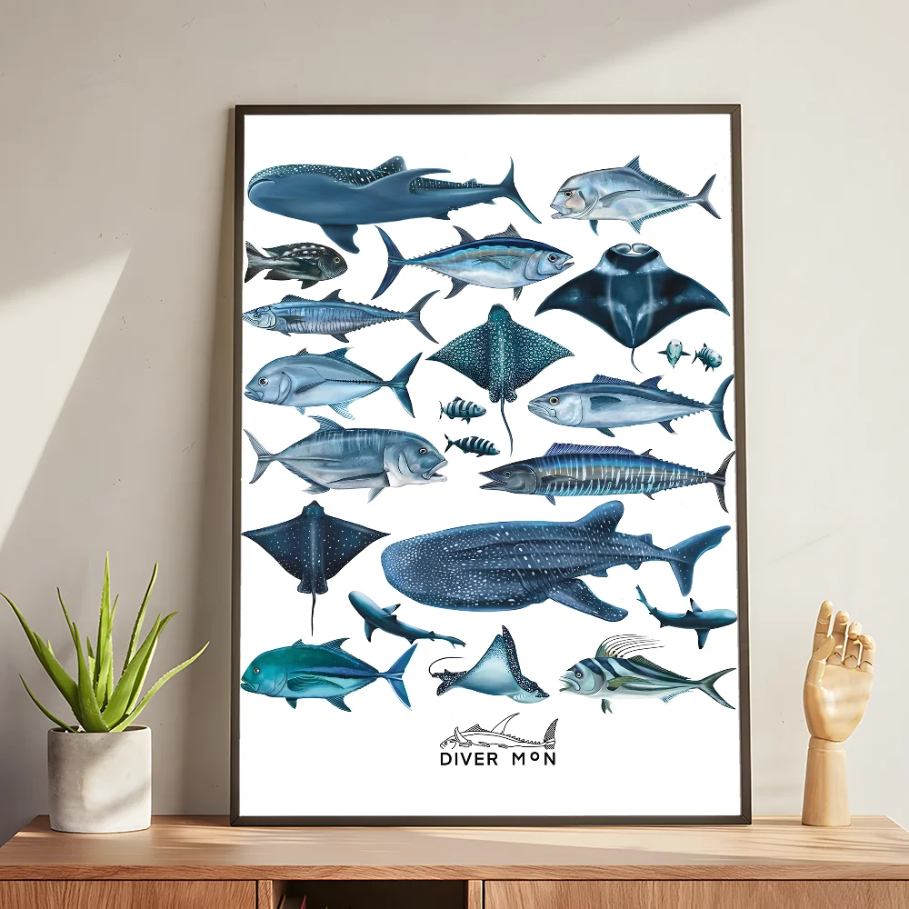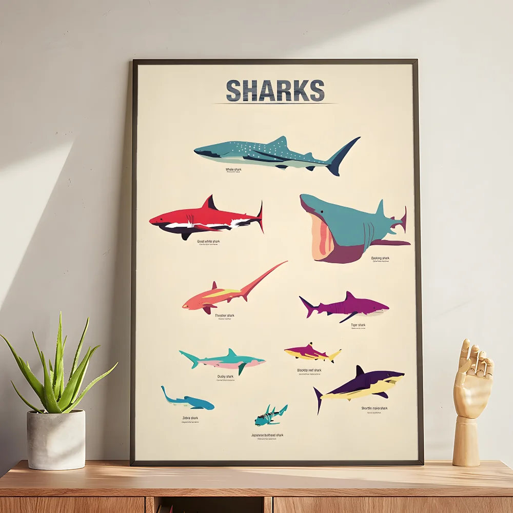 Whale and Shark Seashells Turtles Octopus Fish Marine Life Ocean Animals Poster HD