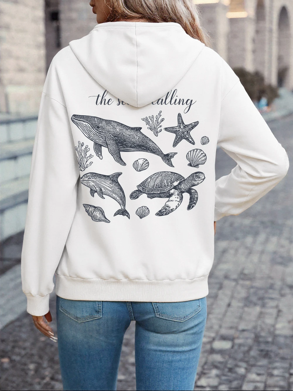 The Sea Is Calling Whale Shark Printed Hoodies